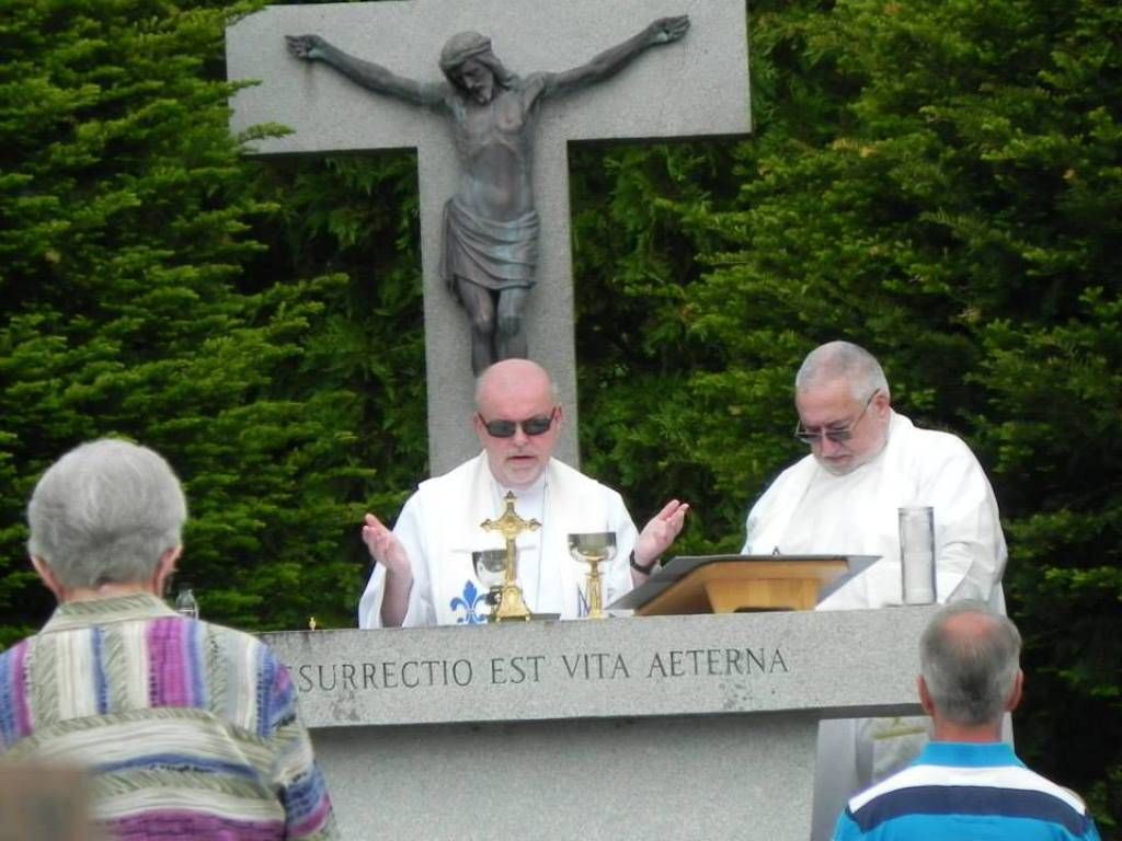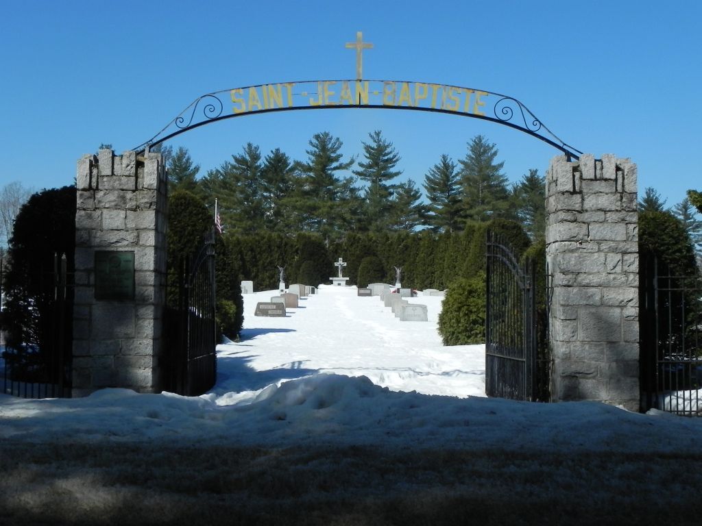 As our parish is 150 years old, we have two cemeteries, an old and a "new". When the land for the church was first purchased, it was with the sellers’ stipulation that a cemetery never be placed on the grounds. Therefore, our cemeteries are located on quiet River Road in Allenstown. The French-Canadian heritage of our parish is evident in the signs above the cemeteries’ entrances, which read “Saint Jean-Baptiste”. The beautiful grounds of our cemeteries are well-maintained and Memorial Day Masses for the repose of the souls are celebrated there annually since 1957. We have recently begun an All Souls candlelight procession on each November.