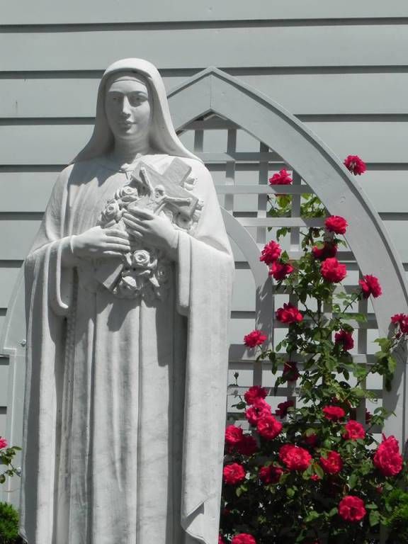Born to a loving family in 1873 (which does happen to be the year of our parish founding) Thérèse Martin was a Carmelite nun in Lisieux, France for only nine years. She never went to the missions or seemed to do anything extraordinary, dying at the age of 24 – yet, she is the Patron of Missions, a Doctor of the Church, and a most beloved Saint. Her autobiography “The Story of a Soul” shows her childlike and profound love for Jesus, her humble recognition of her simplicity and littleness, her devotion to love God through all things (known as her “Little Way”) and her desire to share God’s love with others. Her passion for the Missionary work of the Church and her support of priests through prayers and letters is the inspiration behind the Mission Rosebushes. (To read or listen to The Story of Soul for free, please click HERE.)